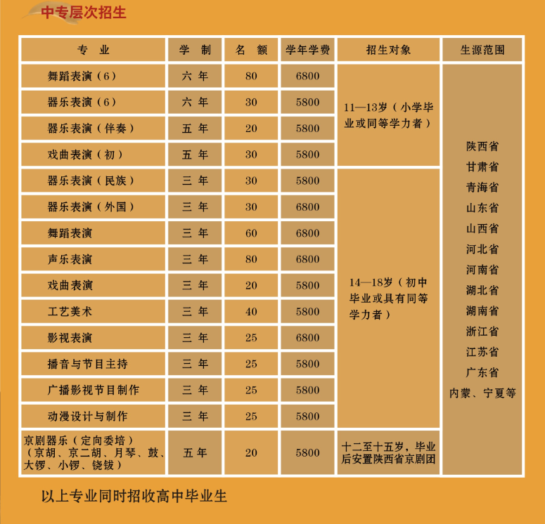 陕西艺术职业学院2012年中专招生计划