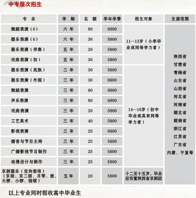 陕西艺术职业学院2011年中专招生计划