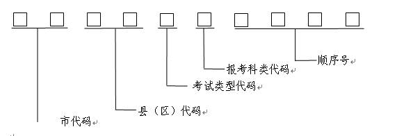 其中市、县(区)代码为报名点所在市、县(区)的代码,考试类型代码为8,报考科类代码为1。