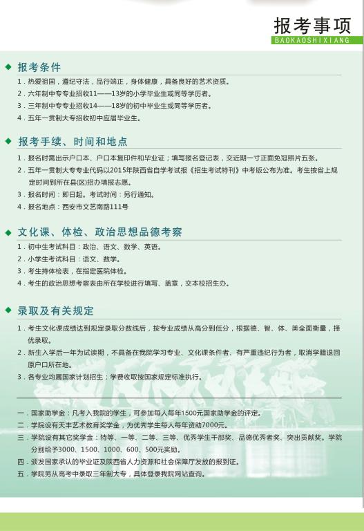 陕西艺术职业学院2015年中专、五年一贯制大专报考事项