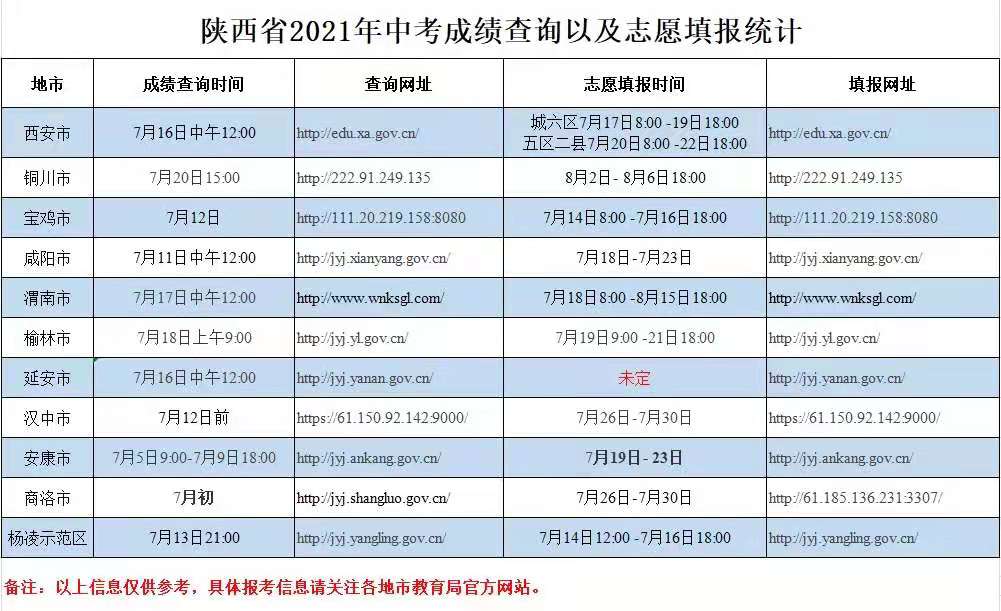 陕西省2021年中考成绩查询及志愿填报统计